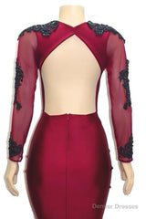 2025 Elegant Mermaid/Trumpet V Neck Long Sleeve Applique Beaded Backless Satin Prom Dresses