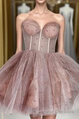 A-line Dusty Rose Sleeveless Tulle Short Homecoming Dress