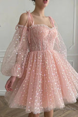 A Line Off the Shoulder Blush Short Homecoming Dress with Long Sleeves