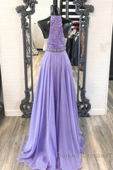 A Line Purple Lace Long Prom Dress with Belt, Purple Lace Formal Dress, Purple Evening Dress, Bridesmaid Dress