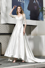 A-Line Satin Lace 3/4 Sleeves Ankle Length Wedding Dresses