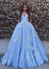 Ball Gown Off-the-Shoulder Sleeveless Court Train Tulle Prom Dresses With Pleated Appliqued