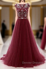 Burgundy Wine Red Beading Long Sexy Prom Dress