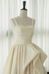 Champagne Tea Length Prom Dress, Champagne Tea Length Formal Homecoming Dress