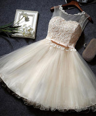 Cute Champagne A Line Lace Short Prom Dress, Homecoming Dress