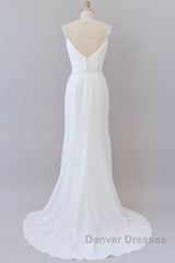 Elegant Ruffle Beading Chiffon Sheath Wedding Dress