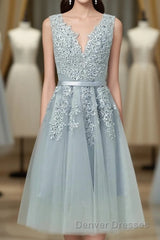 Gray A Line Lace Tulle Short Prom Dress, Homecoming Dress