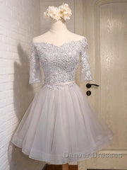 Half Sleeves Short Lace Prom Dress, Short Lace Homecoming Bridesmaid Dress