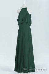 Hunter Green Chiffon A-line Long Bridesmaid Dress with Cold Sleeves
