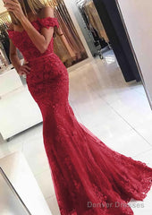 Lace Long/Floor-Length Trumpet/Mermaid Sleeveless Off-The-Shoulder Zipper Prom Dresses With Appliqued Beaded