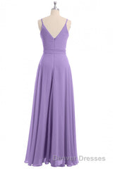 Lavender Spaghetti Straps Tie-Side Long Formal Dress