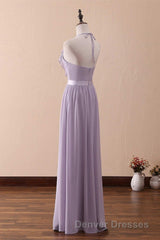 Lilac Halter Open Back Ruffled Long Bridesmaid Dress