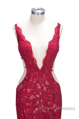 Long Mermaid V-neck Lace Appliques Prom Dress with Slit