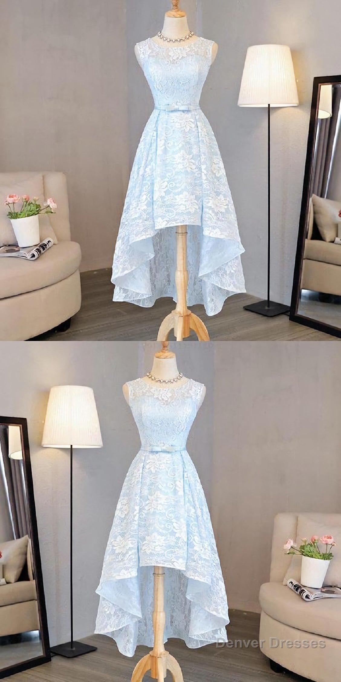 Nice Pink High Low Lace Dress, Pink High Low Dress, Lace Dress, Homecoming Dress