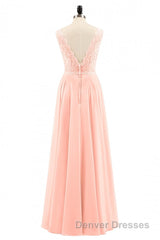 Pearl Pink Backless A-Line Long Bridesmaid Dress