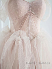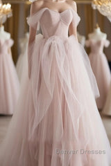Pink sweetheart tulle long prom Dress, pink tulle formal Dress