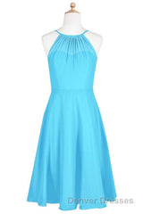 Pool Blue Chiffon Halter Short Bridesmaid Dress