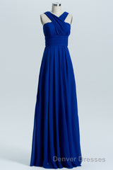 Royal Blue A-line Chiffon Long Convertible Bridesmaid Dress