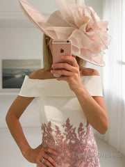 Sheath/Column Off-the-Shoulder Tea-Length Lace Mother of the Bride Dresses