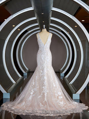 Sheath/Column Straps Sweep Train Lace Wedding Dress with Appliques Lace
