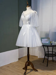 Short Gray Lace Prom Dresses, Short Gray Lace Formal Homecoming Dresses