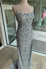 Sparkle Tiffany Blue Sequins Long Prom Dress with Slit