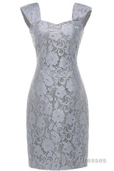 Two-Piece Grey Lace Short Mother of the Bride Dress