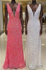 V neck Sequin Mermaid Long Prom Dress,Formal Dress