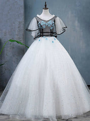 White Ball Gown Tulle Sequins Appliques Quinceanera Dresses