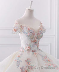 White Sweetheart Off Shoulder Lace Long Prom Dress, White Evening Dress