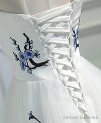 White Tulle Long A-line Prom Dress, White Graduation Dress